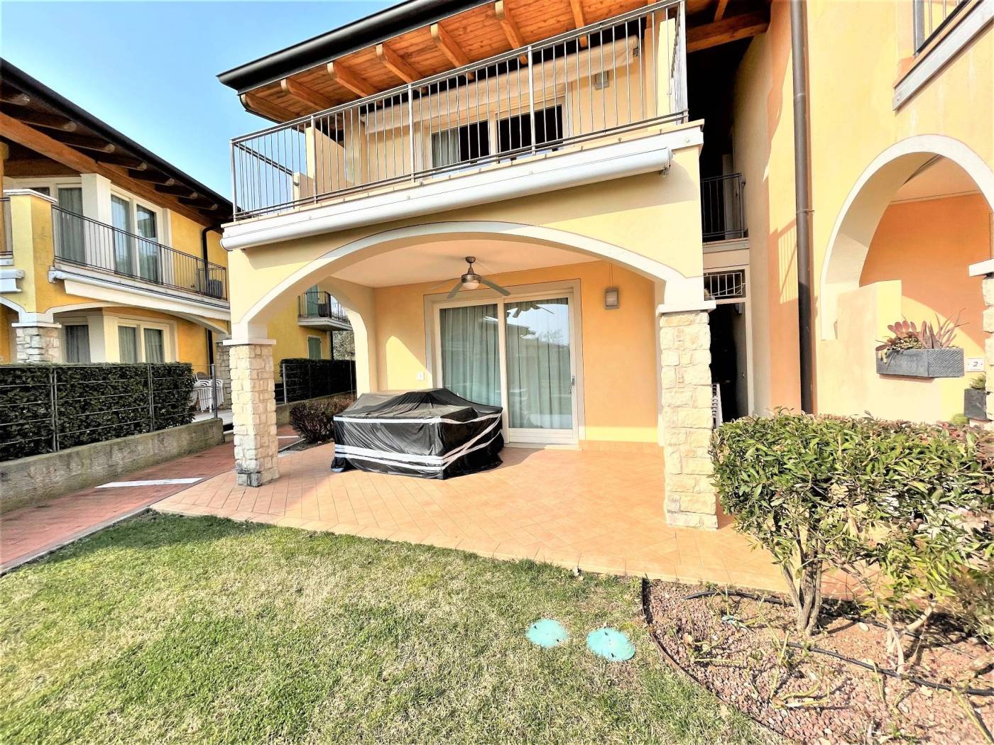 A pochi passi dal Porto di Dusano, proponiamo in vendita un elegante trilocale posto al piano terra con loggia e giardino privato con vista panoramica sul lago.